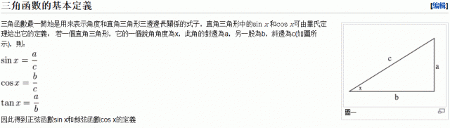 playaoc wrote:堂弟突然問我一題3角函數的問題@@我完全不會算了請問有人知道怎麼算嗎?有一個直角三角形,角度分別是9.5、80.5、90其中一邊的長度是151,請算出另外兩邊的長度@@...(恕刪) 斜邊的長度為151 / cos(9.5) = 153.099對邊的長度為151 * tan(9.5) = 25.269