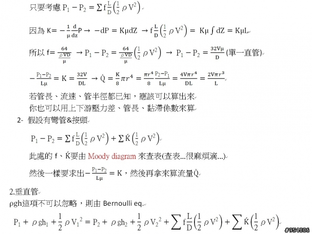 by Hagen-poiseuille equationtupac04131 wrote:還缺管長.......(恕刪) 問每分鐘流量,不需要管長需要空氣黏度(但我在算的時候通常都忽略不計需要直徑(有了需要圓周率(有了需要壓力降這個嘛 ..沒有壓力降呢 ..我也不會查,對不起= =--------------------------------以上當我沒說對不起 ..我剛剛考慮牛頓流體了 ..希望有強者可以解答,幫推