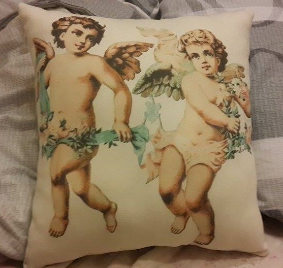 我原本是想要做成有金邊的抱枕,全白色的箱子裝入,用米白色附有光澤的高級包裝紙包裝,最後再用黑色緞帶綁起蝴蝶結