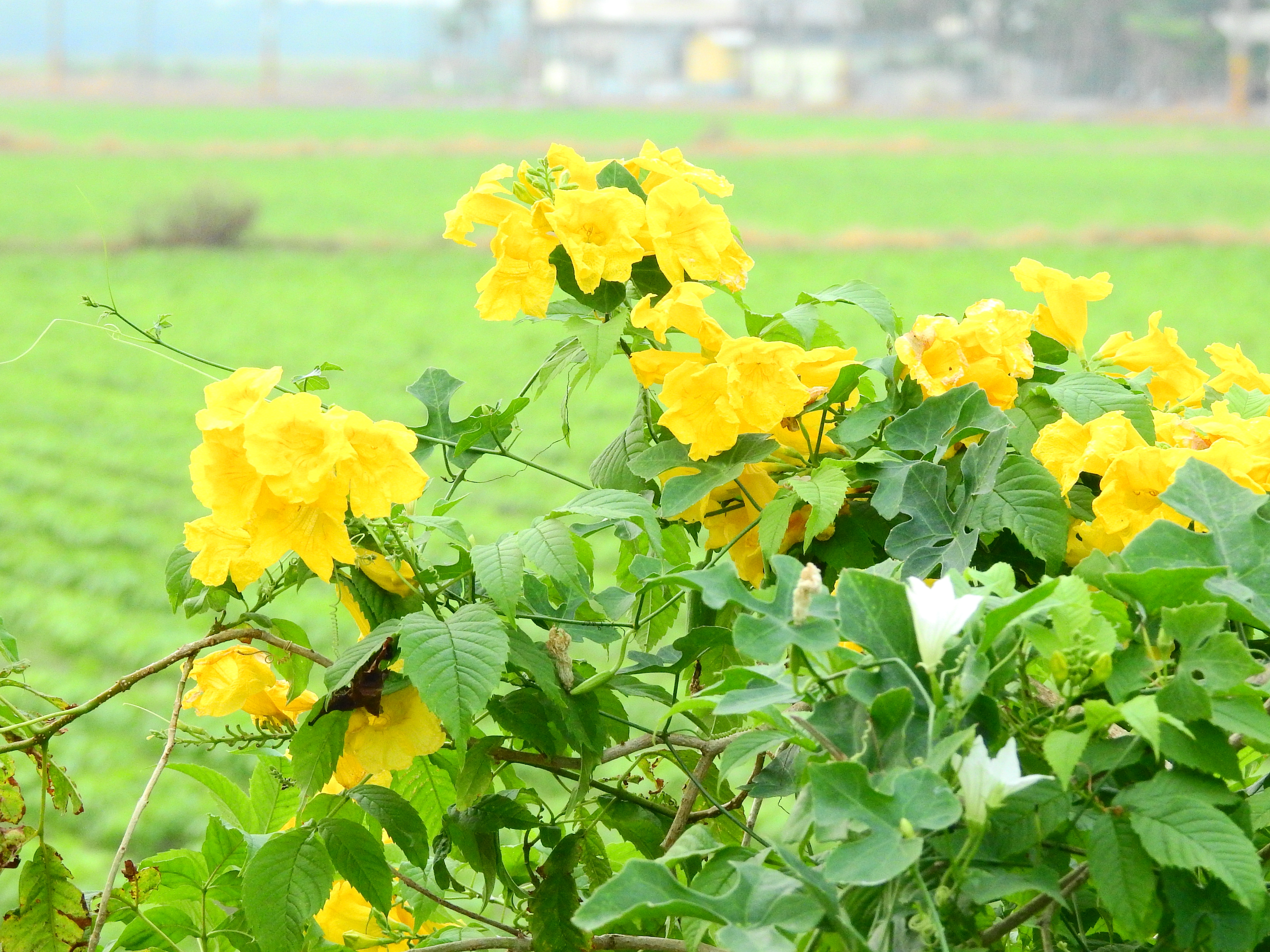 現代農業儘可能少噴灑除草劑,所以常可見雜草多,非常有綠意的景象。