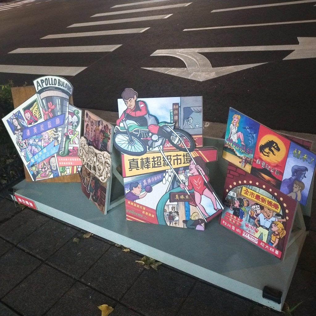 想說長期久坐都變胖了不少,因為工作忙碌很少有運動機會,有空就想說從忠孝復興捷運站走到市政府捷運站,剛好看到阿波羅大廈前面的裝置藝術,過去電影院還是油畫的年代,用色鮮明大膽,字體大或是以特殊字體來呈現出壓克力畫,呈現出廣告裡的東區故事,有興趣的人相信經過阿波羅大廈就會發現藝術家姬的創作設計。