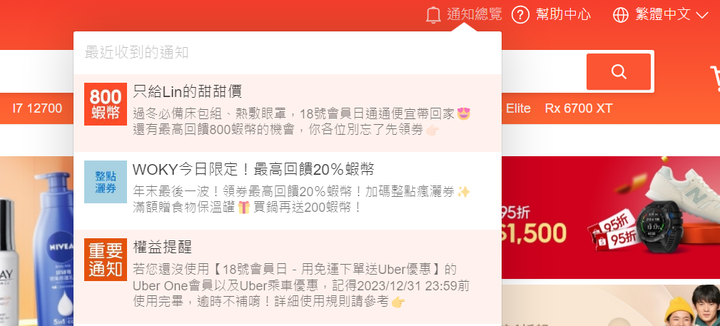 當天其實垃圾訊息還有..後面時間又買了一樣東西後,結果就...(附圖)之前在他們留言板看過有賣家花了不少廣告費,說是有游覽量,但完全沒成交量,下方就有留言說到,可能是AI投廣的假象!! 要賣家別再浪費錢了...廠商還是要注意吧! 現在AI當道,一邊抽高額手續費,一邊散佈大量垃圾廣告訊息給買家營造高游覽、點閱假象..一邊再收廣告費其實把使用者當垃圾廣告散佈來源無可厚非,賺不到賣家的錢,賺廣告費也不錯!但是設定上可以完善一點吧?像是可以對垃圾訊息批次或一次大量刪除的功能,而一些公司營運、買、賣家守則變更、重大政策、政府相關、法律等訊息則要求強制接收。一家電商龍頭如果能把使用者當成垃圾廣告訊息接收器,應該能創造不少營收吧!!
