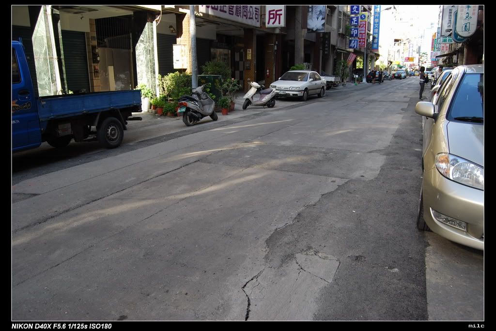 講到這個路況~~如果說路面修修補補還有一條路線可以閃來閃去也就作罷~~不過今天我真的輸了~~怎麼轉一定會有突起凹陷水溝蓋.....所以我又特地回頭拍了張照片~~既然沒辦法改變....茶餘飯後大家來苦中作樂比較看看誰家的路況比較適合WRC賽事~~也是蠻不錯的~~哈哈~~