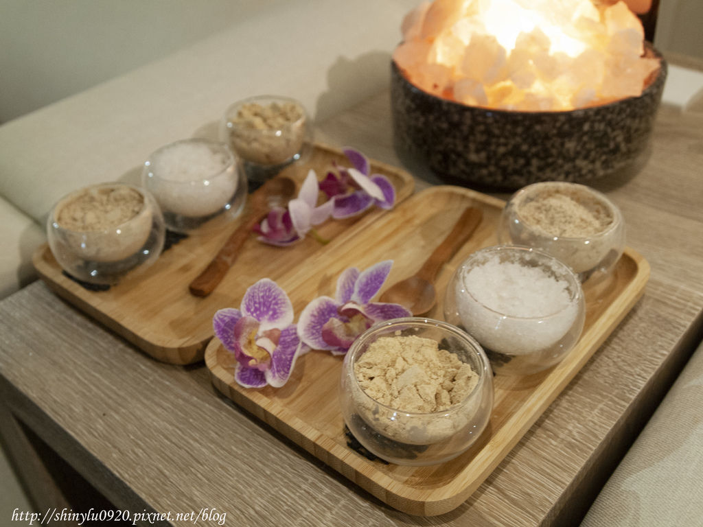 這次服務人員更詳細的了解我目前的按摩所需,針對我最需要按摩的部位來加強,所以我這是一樣選【33饗安精油芳療套餐】,包含藥草足浴、肩頸頭、足部經絡按摩、全身性的芳療深層放鬆,也因為最近特別累又加上穿高跟鞋久站的不適,額外加購了各10分鐘的腿部循環及頭部舒緩芳療課程