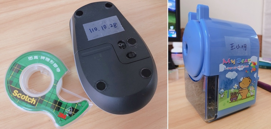 手邊沒有姓名貼,直接拿出Scotch 105隱形膠帶來寫名字吧。用來寫設備購買日期也很合適唷。