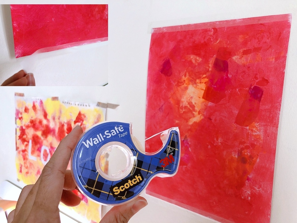 左下角是原本用單色紙膠帶貼畫作的樣子,還真不美觀呀>< 改用Scotch來貼畫作,若不小心貼歪了,也能重複再貼:)