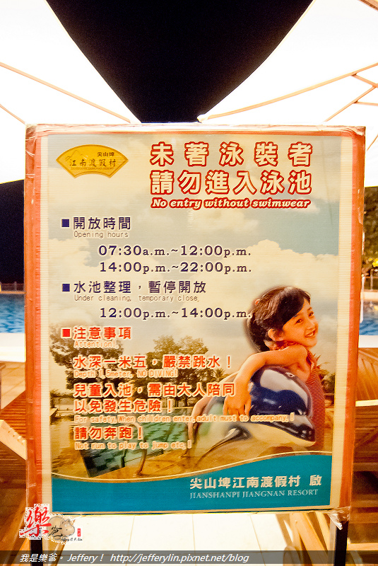 由於早已過了游泳池的開放時間, (如上圖), 只好明天請早囉!