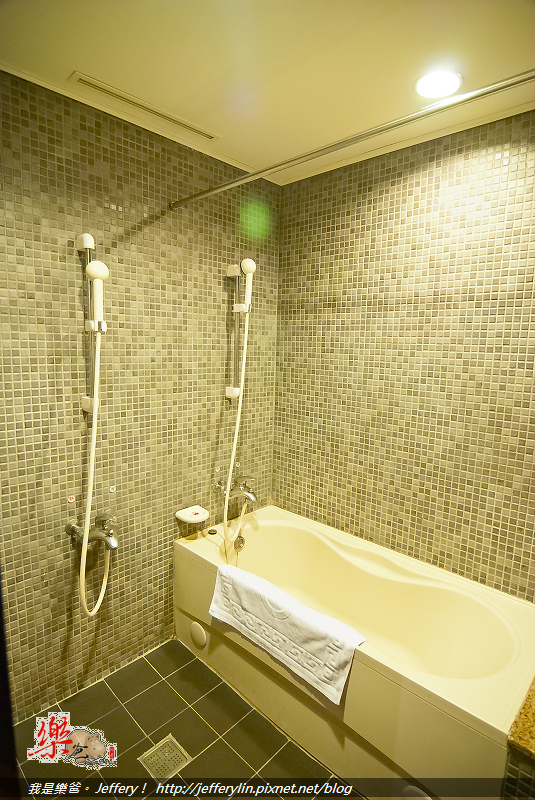 這間浴室提供了二支蓮蓬頭可以同時使用, 空間尚可, 不過這裡是屬於比較簡易式的乾濕分離, 並無豪華的玻璃門隔間, (如上圖)。