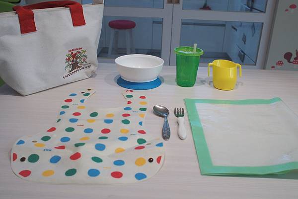 當少晞開始自己吃飯, 在家用的是Stokke 的餐墊, 真的是超級大推啊, 大概可以阻擋百分之八十灑出來的飯菜和湯, 能阻止湯湯水水四處漫延災情擴散就很棒了, 而 外出時難免遇到桌子比較髒的情況, 一開始都是用酒精+ 濕紙巾, 不過有些的桌子實在不是這兩者可以解決的, 只好找方便攜帶的餐墊, 一開始一直在考慮要買 summer infant 還是小魚媽的, 後來看看大家的心得後, 好像小魚媽的還是比較方便攜帶一些, 最後就買了小魚媽的餐墊. 餐墊大小蠻適中的也方便清洗, 不過常常洗完陰乾後就忘了再帶出門, 所以後來就漸漸地也沒有什麼再帶這餐墊, 而是隨身帶兩片 Neat Solution 的可拋棄餐墊, 如果太髒的桌子就直接黏一張.