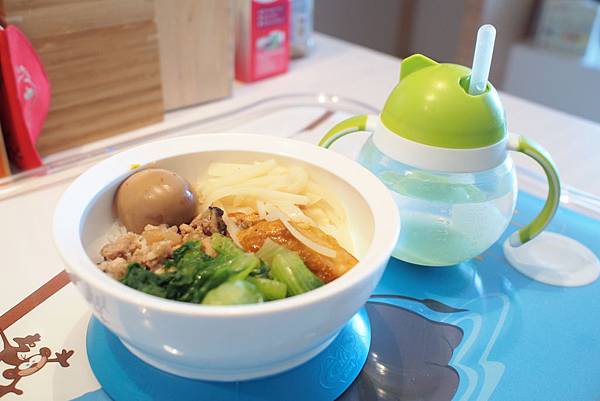 不過不曉得是我的吸盤不夠力還是怎樣, 少晞沒兩下就可以把碗和吸盤分離, 之後更厲害可以從吸盤中間直接拆解, 把上下的吸盤從 dish holder 拆下來, 後來看到 Calibowl 吸盤直接在碗上的, 就趕緊買了一個回來試試.... 所以少晞的午晚餐就會像這個樣子囉~
