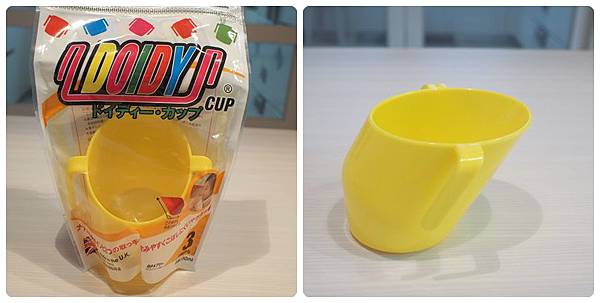當初看到有媽媽推薦這個喝水杯, 當從吸管杯進階到一般的杯子時, 這個傾斜杯可以幫助小人比較容易就喝到水, 所以去年去日本阿卡將時, 就順手帶了一個回來試試, 可以看的出來杯身本身就是斜的, 所以小人只要稍微倒一點杯子就可以喝到水了,