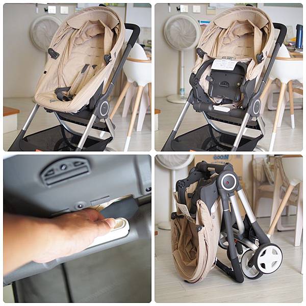 不過因為椅墊是屬於比較軟式的布料, 不像 Moodd 背後還有個硬殼背板, 所以如果裡面躺著小孩, 要從躺平變成坐著, 要稍微花點力氣才行