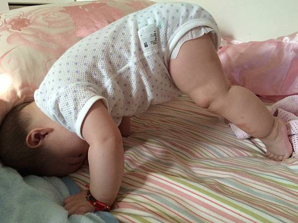 直到前天,我老婆把她關進嬰兒床裡在地上整理東西時,一轉頭她就變下圖這樣~~~~~