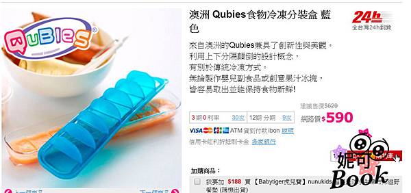 P.S 我是懶惰媽媽,沒辦法每天煮新鮮的,所以採用冰磚,我是用”澳洲Qubies副食品冷凍分裝盒",挺好拿出來的,扭一下就轉開 (網路上很多人分享,谷哥一下就可看到許多開箱文),每格30g, 共8格,而且這個材質可以進消毒鍋或烘碗機的。