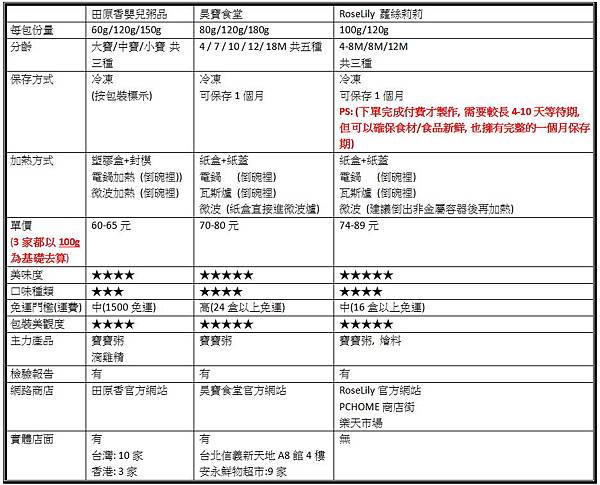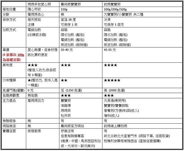 以下把六家寶寶粥和媽媽愛心手做粥的比較總表, 讓新手媽媽們一目瞭然,不用謝了,不客氣