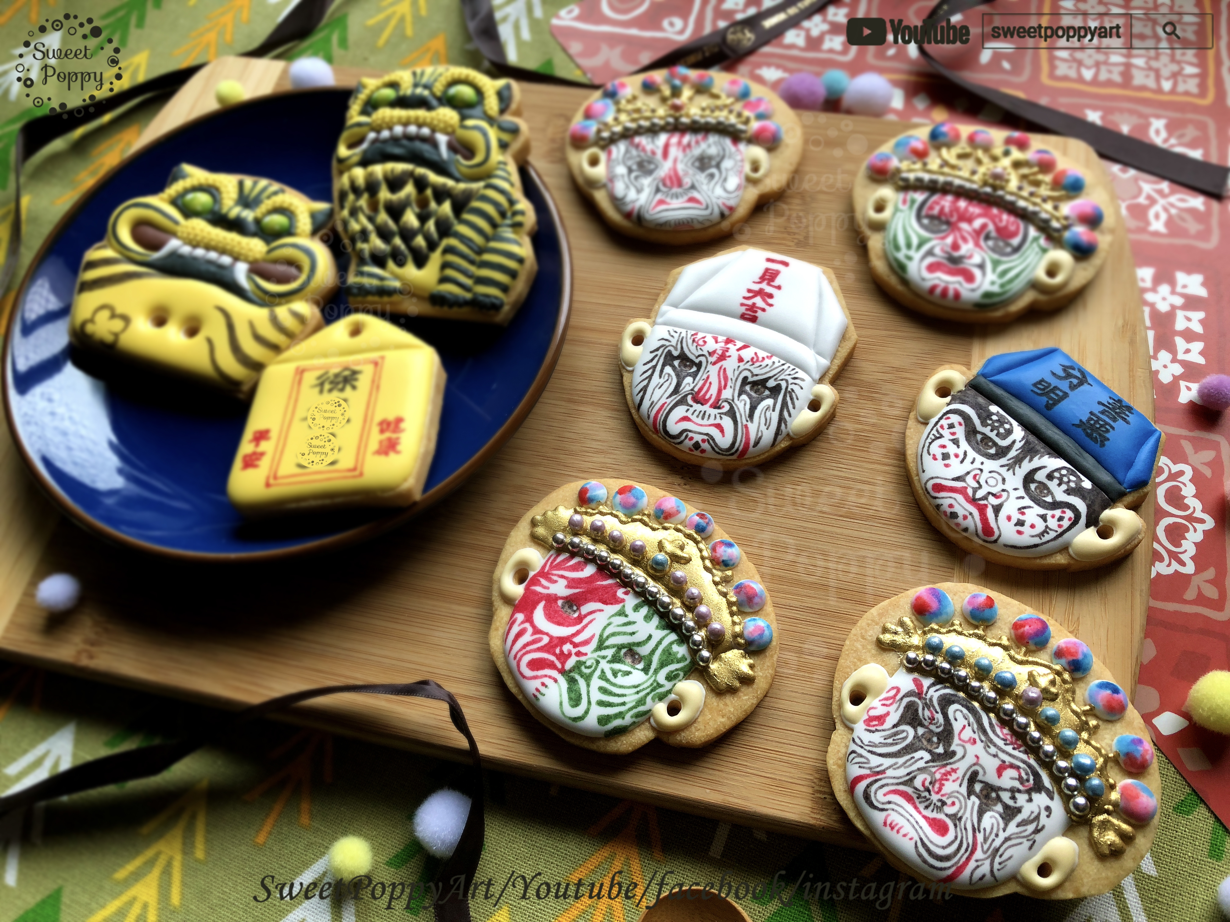學習要如何在餅乾上面畫 金虎爺 - 家將陣頭 | SweetPoppyArt 甜胖皮藝術糖霜餅乾 | #21 (原創影片)(6P+影)