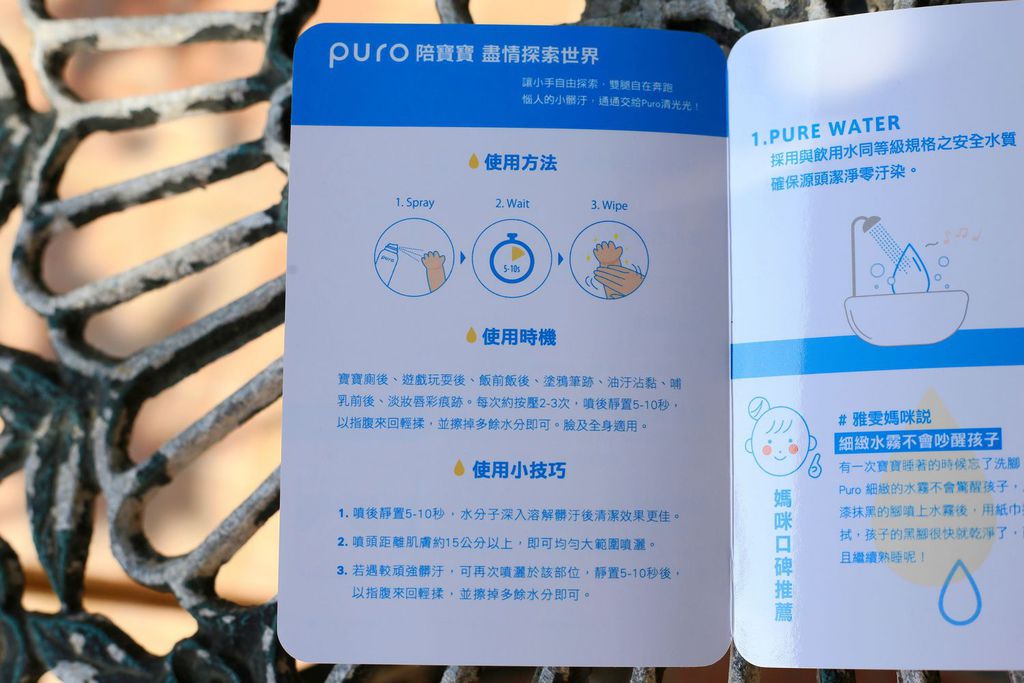 現在有了Puro寶寶淨潔噴霧,我們更放心(請忽略雜亂的背景...)