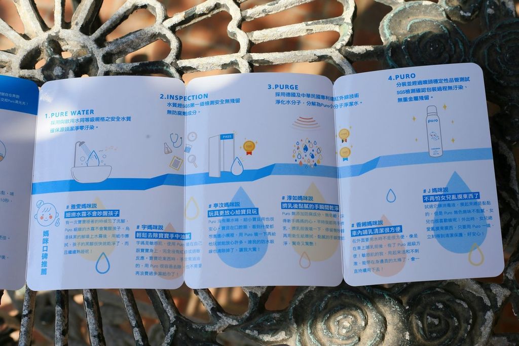 手冊裡也詳加回答:Puro小分子淨潔水不含皂鹼及防腐劑,誤食或噴到眼睛皆是安全的
