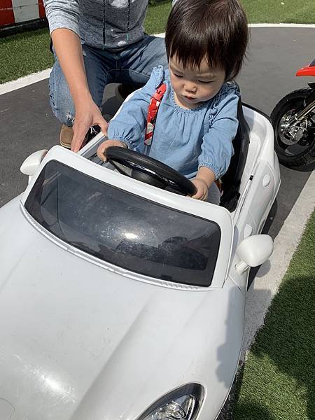 紅豆一開始還不懂電動車怎麼玩