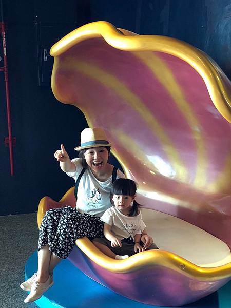 第一站來到『海洋哺乳動物生態館』,因為剛剛爬了好漢坡,真的需要先吹個冷氣喘個氣呀…先跟門口的貝殼拍一下照