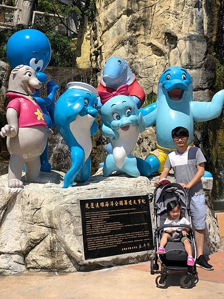 一抵達海洋公園,不免俗的要跟吉祥物雕像拍個照啦,