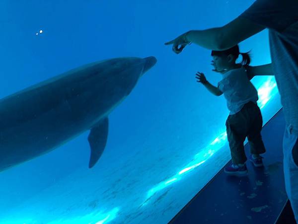 完全沒人擠,可以跟海豚隔著一塊玻璃超近接觸啊!