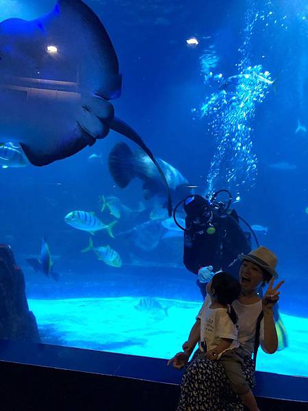 然後湊巧看到了潛水員在餵食,潛水員很調皮呢!他看到你們在拍照會跟你互動!好有趣耶