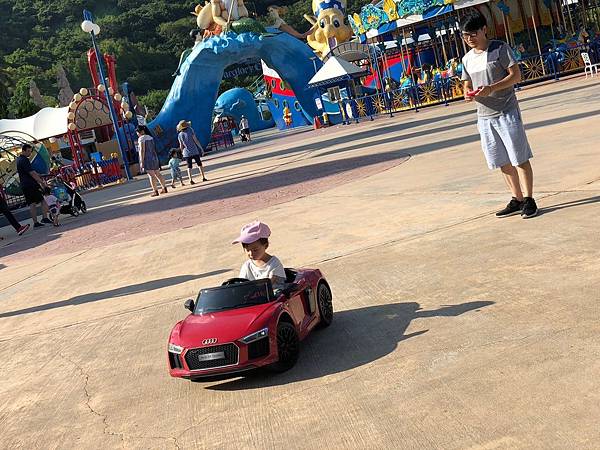 最後就玩了一個遙控車,長子控制,閨女坐在裡面這樣~~