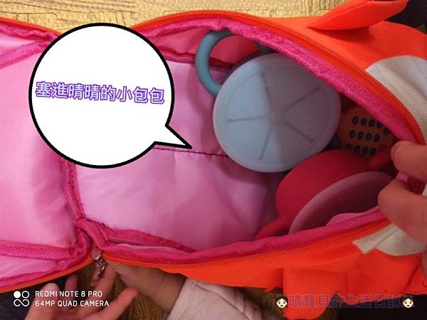 晴媽在晴晴的碗裝了她最愛的小饅頭,程程的則是放了媽媽幫他處理過的一口大小的米餅,晴晴順手就拿取零食吃,而且還餵程程(寵弟魔人),餵的同時不忘說弟弟很懶惰不自己拿,中途程程將零食杯整個杯口朝下一直倒,晴晴還嚇到的大喊『快倒掉了啦』!不過當然最後是沒倒出來啦,這讓晴晴非常疑惑東西怎麼沒倒出來(最天真的反應),不過注意力很快的就被她的零食杯給吸引走了(真的是有沒有那麼愛零食杯和零食啊🤣)