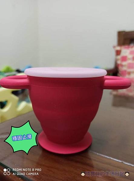放在玻璃桌面可以有穩固止滑的效果,不用擔心會打翻零食倒岀的問題,媽媽還要花時間清理一番,整個很體貼當媽的辛苦的產品有沒有❤️