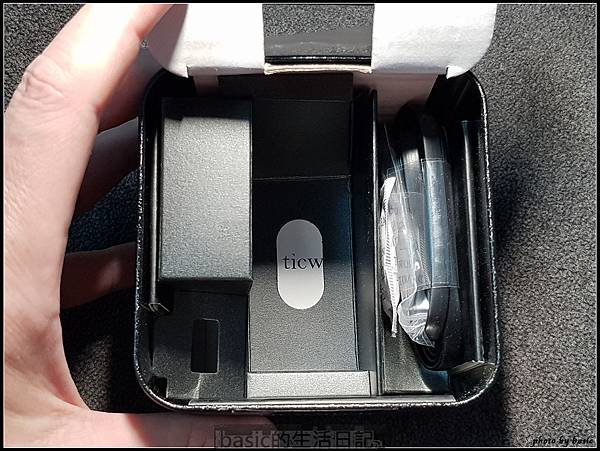 這次的Ticwatch S因應運動風 , 盒裝也改為較活潑的設計 , 鋁盒包裝 , 質感相當好