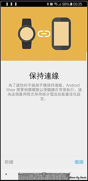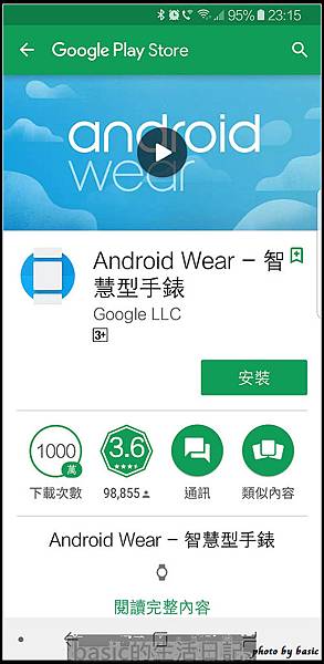 開機後手機端需先下載Android wear app , 簡單的配對就可以使用了