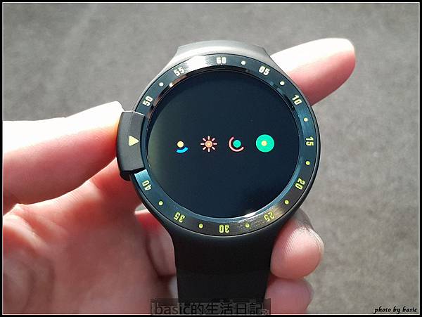 ticwatch一代雖然外觀很不錯 , 不過它的螢幕面板解析度較低 , 還有使用一般的TN面板 , 黑色不夠黑 , 這是稍有小遺憾的地方..