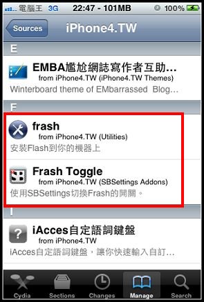 今天在某網站皮樂大大的Cydia Source中上傳了COMEX神人所開發的Frash 0.02版(之前推出的版本只能讓iPad使用),經筆者測試確實可用,簡單寫一篇使用心得,首先加入Source: