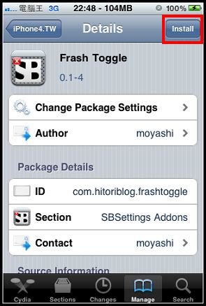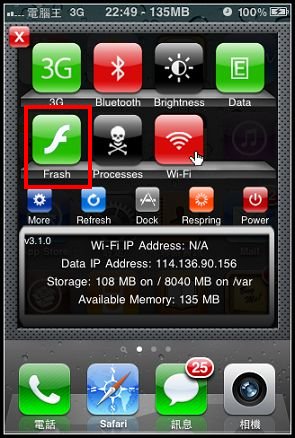 安裝安裝「Frash Toggle」就可以在SBSetting開關Frash,比較方便使用: