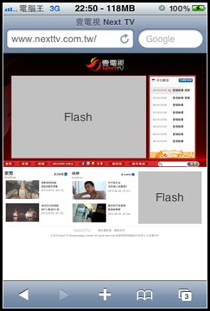 接著筆者測試壹電視跟土豆網不是不能撥就是會跳出,所以個人覺得現在Frash大概只有「Flash Lite」的水準,不過對筆者來說已經夠用了(因為有的網站沒Flash的話根本進不去!):