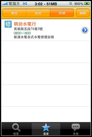 在設定搜尋條件的最後一項功能也就是永慶HouseFun與其他軟體最大不同的之處就是多了一個"修繕"的服務,最重要的是可以依照地區去找在地的修繕公司幫忙維修家裡大大小小的問題: