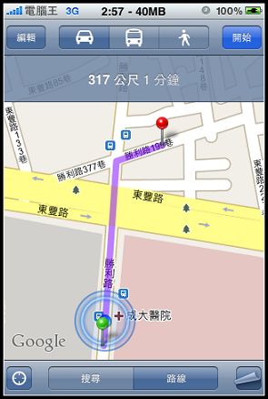 點選"路徑規劃"軟體就會呼叫Google Maps規劃出路徑: