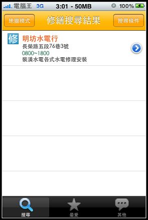 ▲一樣的水電裝修在安平只找到一間,台北市卻能找到一堆....