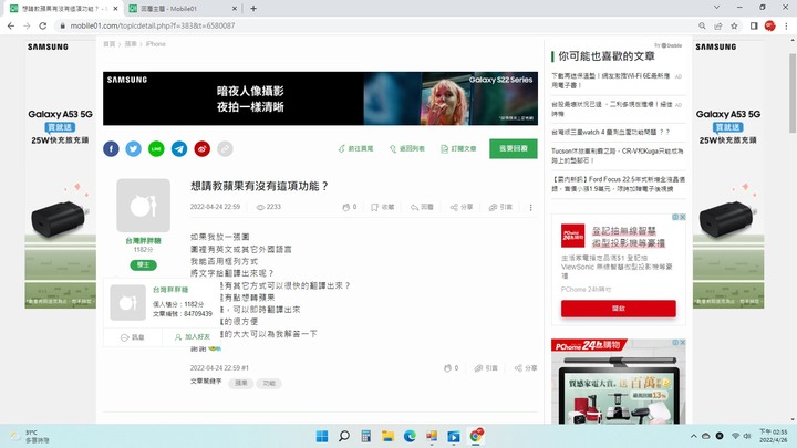如果我放一張圖圖裡有英文或其它外國語言我能否用框列方式將文字給翻譯出來呢?又或者是有其它方式可以很快的翻譯出來?小弟三星有點想轉蘋果三星有筆,可以即時翻譯出來這功能真的很方便希望知道的大大可以為我解答一下謝謝