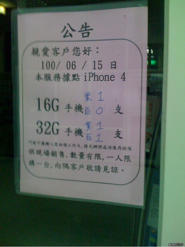 KaworuAndy wrote:感謝這位大大的這篇文...(恕刪) 恭喜大大入手漂亮的白色iPhone4喔~為了它早上四點多去排隊這樣的事情其實我也幹過,人生之中難免會做一些這樣瘋狂的事情~呵呵!過程其實比結果還來的興奮。順便提一下,如果要排隊的朋友,記得要帶防蚊液喔!如果當天下雨的話,[敦南]跟[大安]有地方遮雨。