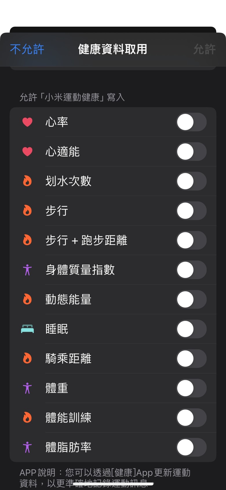 1843fly wrote:請問全天血氧的功能是...(恕刪) 你搞錯方向了..這類型用藍芽連結手機的運動手錶本身是要靠小米運動與健康這APP運作才能看到各種數據的..所以 血氧數據當然要在小米運動與健康這APP才看得到..蘋果的健康APP當然看不到呀..更正..小米運動與健康APP可以同意IPHONE的健康APP存取數據..但不包括""血氧""這一項..