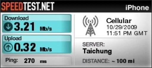 下圖是我測過最好狀況。可以app store 搜尋speed net,一個測速率的軟體http://itunes.apple.com/tw/app/speedtest-net-speed-test/id300704847?mt=8