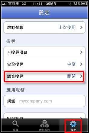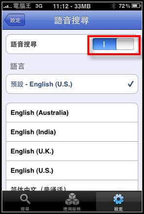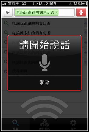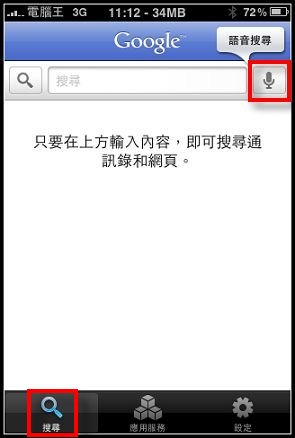 設定完畢後,請選擇"搜尋",此時右上角就會有語音搜尋的LOGO: