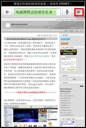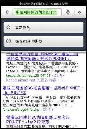 點選連結後就可以瀏覽網頁內容,再選擇右上角的箭頭還可以選擇在SAFARI開啟: