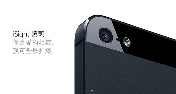 新的相機—— iSight ,主相機為 8MP ,和4s相同,最大光圈為f2.4 ,鏡頭模組由5 片藍寶石的鏡片組成並具備混合 IR 濾鏡,拍攝速度快 40% ,錄影品質仍然為 1080p 且支援錄影中拍照。