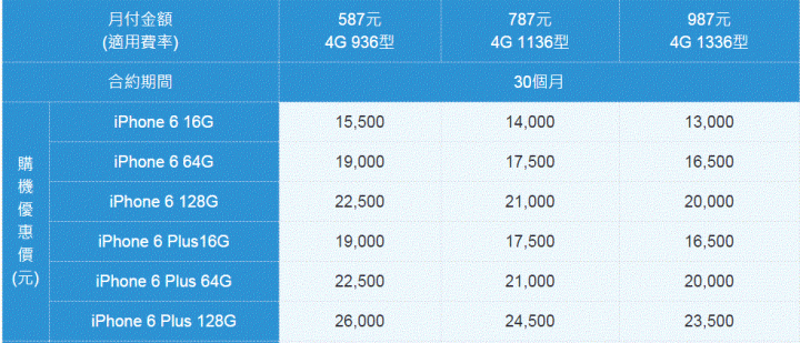 請問一下各位,有人知道台哥IPHONE 6 或 IPHONE 6 PLUS 學專各資費的價錢嗎?