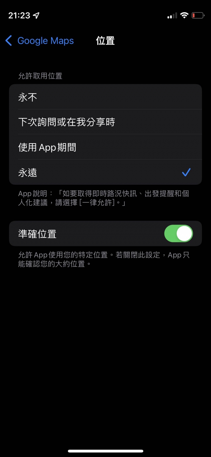 我現在iphone13在google的定位是沒問題的!但是apple的定位只有大概的位置,就連用,冰淇淋這個app的定位也是定位大概位置