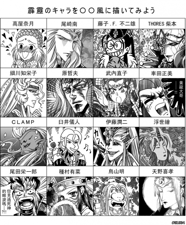 剛剛看到一張大陸人模仿日本畫家畫的PILI人物,有的還蠻像的,大家可以看得出是那些人嗎?我覺得是:一頁書、太學主、伏嬰師、咒世主黃泉、漠刀、地者、??????、央森、香獨秀、羅喉天狼星、秦假先、白棄天、戢武王