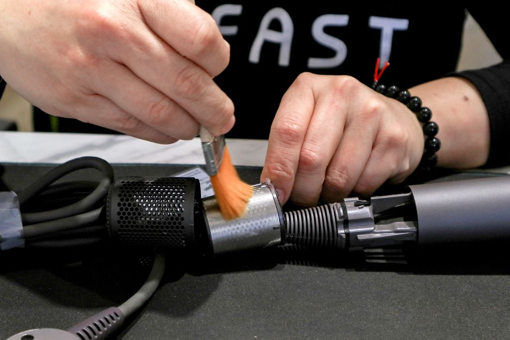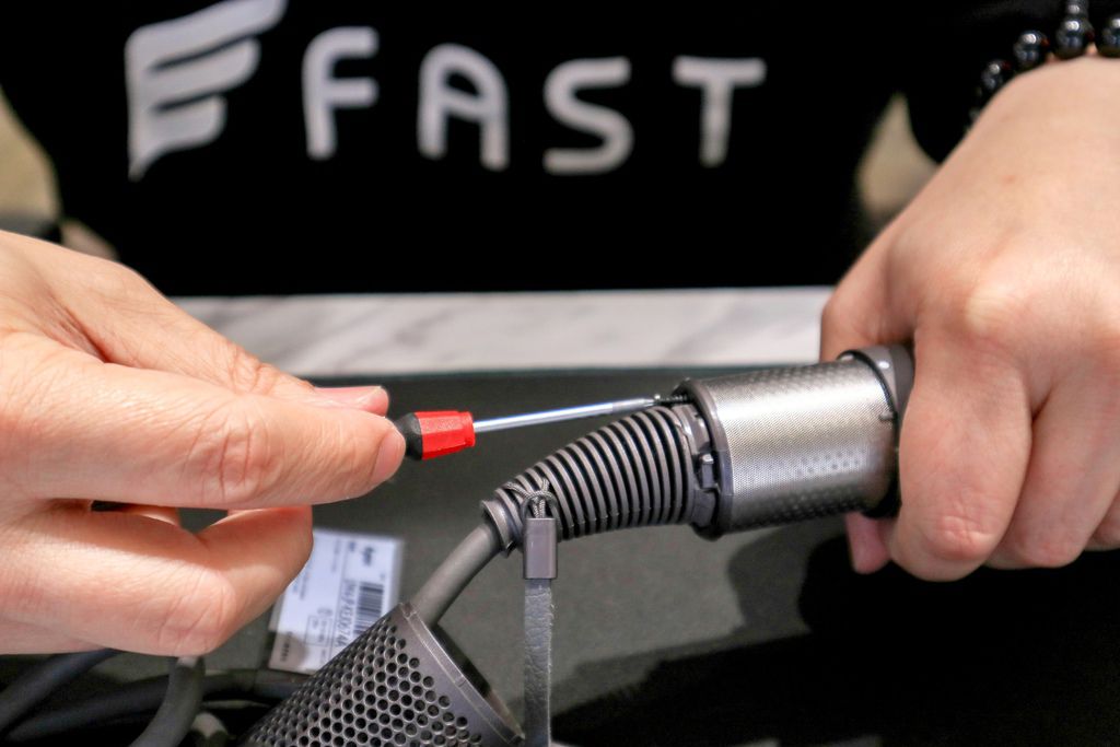 ▲dyson吹風機維修後工程師會清潔元件灰塵,有時後小灰塵可能就會塞住無法使用可馬虎不得,再稍做檢查後組裝。